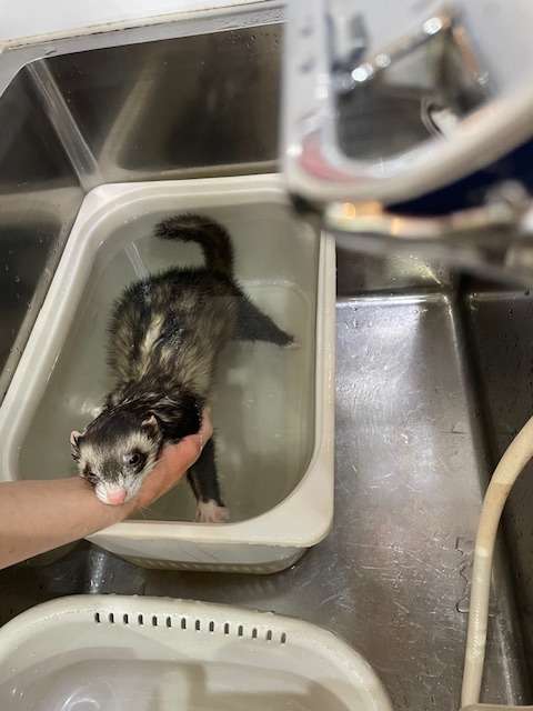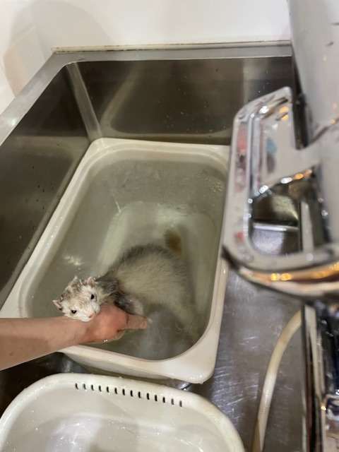We've just jumped into the water! 2026/04/14 Hi everybody! Blue Wishの空&凪だよ。 昨日は中野のフェレットショップで、温泉に浸かってきました。 お風呂大好きなのです。 炭酸泉気持ち良かった~(^◇^) 凪「こんなに冬毛が抜けました!アタシの頭に乗ってるの冬毛の塊だよ」 英会話教室